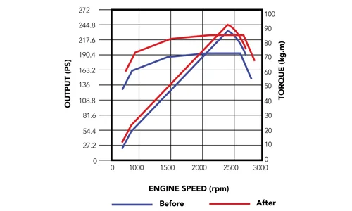 Dilengkapi dengan transmisi 6 percepatan yang lebih efektif, serta mengusung tenaga 245 PS, torsi 80.5 kg.m dan final gear ratio 5.571, Isuzu GIGA FVR mampu dijadikan kendaraan andalan dengan tarikan bertenaga, yang tangguh menerjang segala jalan, baik itu jalan rata maupun berbukit.